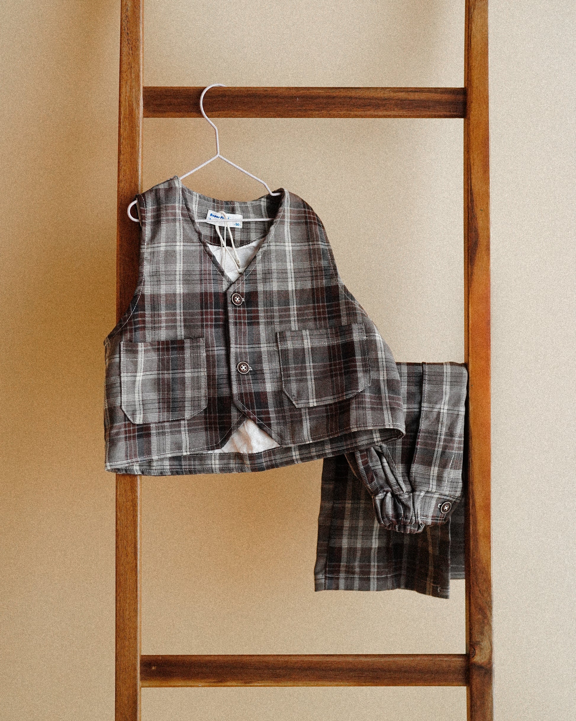 Plaid Vest with Wide Leg Bottoms